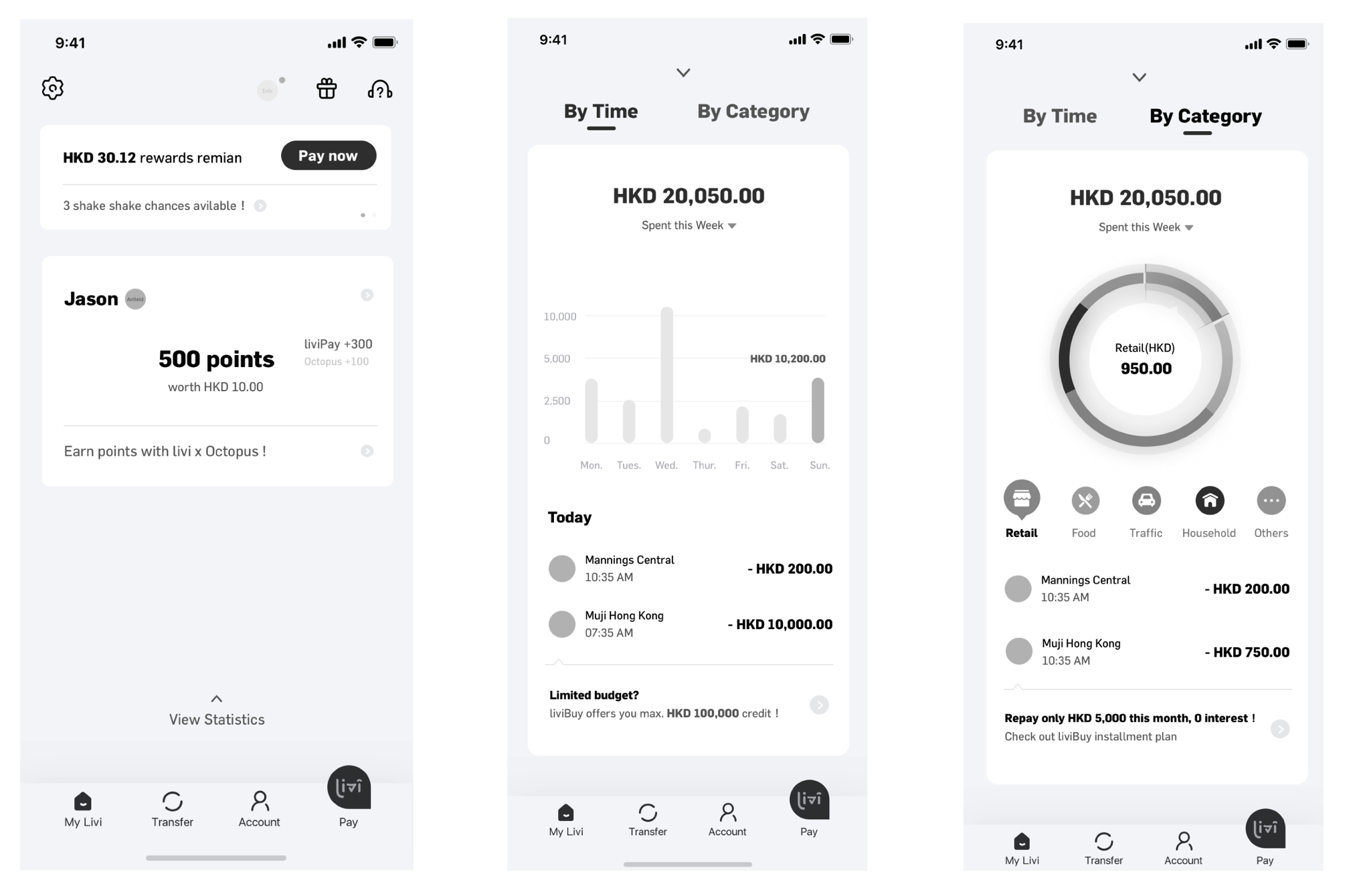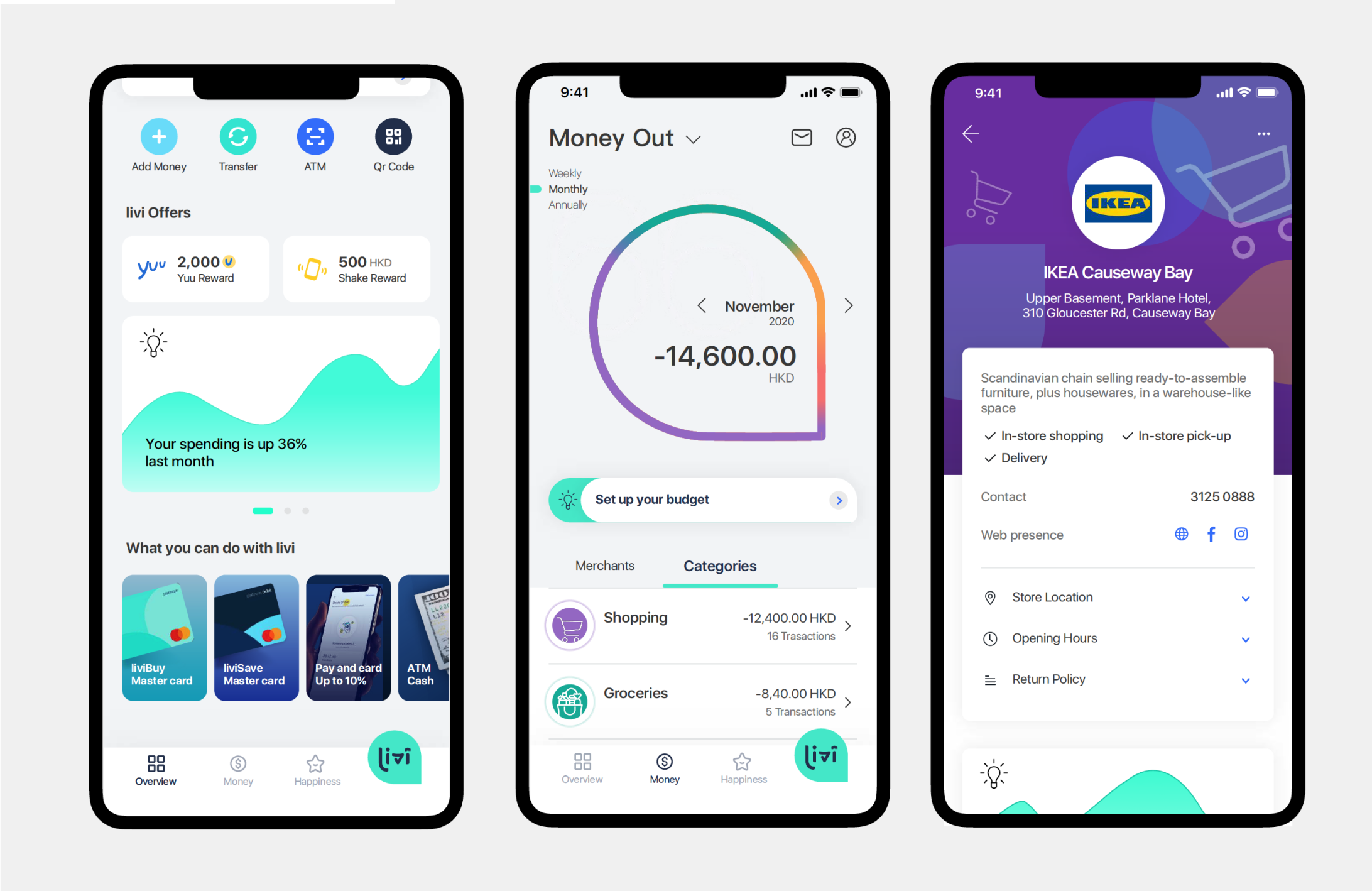 livi’s ambition is to create a unique proposition and banking experience for customers in Hong Kong. This requires the ability to differentiate in many ways from competitors. To explore the possibilities through the design of game-changing features, such as PFM (Personal Financial Management) and Insights.