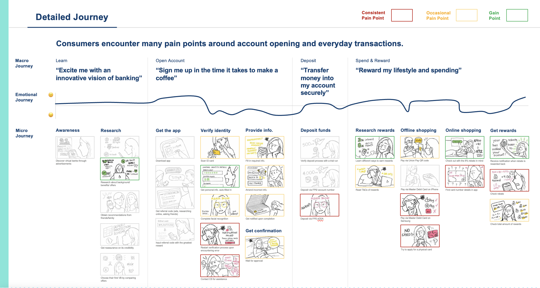 As a UX/UI lead at Livi, a newly established virtual bank, we have a challenge: our NPS is lower compared to other virtual banks in Hong Kong. Our goal is to improve the digital banking experience by understanding consumers' needs and expectations. We want to explore different consumer personas and their varying expectations. We also aim to identify the key differences consumers perceive between traditional banks and virtual banks. Additionally, we want to understand consumers' experiences with virtual banks and Livi, specifically regarding learning, registration, and early usage. By gaining these insights, we can enhance Livi's digital banking experience and provide a more satisfying journey for our users.